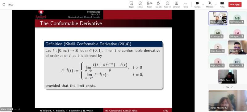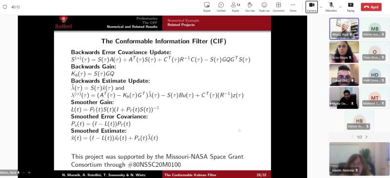 Dr. Öğretim Üyesi Nick Wintz Giresun Üniversitesi Fen Edebiyat Fakültesi Matematik Bölümü'nün misafiri olarak çevrimiçi bir seminer vermiştir. Nick Wintz'e, Moderatörümüz Prof. Dr. Özkan Öztürk'e ve tüm katılımcılara teşekkür ederiz.