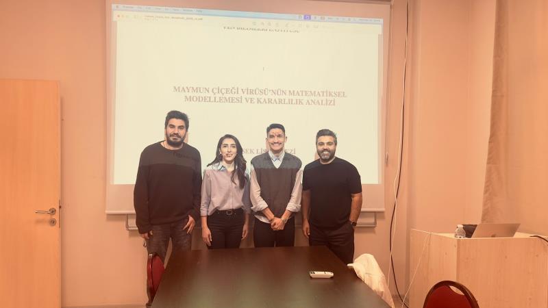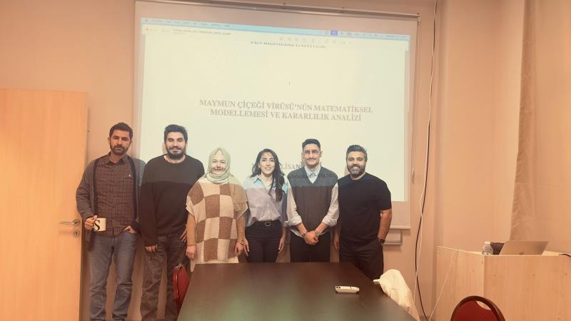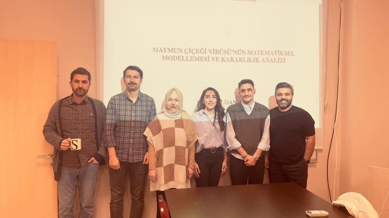 Yüksek Lisans öğrencimiz Abdülkadir Yılmaz'ın, Prof. Dr. Özkan Öztürk danışmanlığındaki "MAYMUN ÇİÇEĞİ VİRÜSÜ’NÜN MATEMATİKSEL MODELLEMESİ VE KARARLILIK ANALİZİ" başlıklı tezininin savunması 25.03.2026 Saat 14.00'da gerçekleştirilmiştir. Yüksek Matematikçi unvanını alan Abdülkadir Yılmaz'ı ve danışmanı Sayın Prof. Dr. Özkan Öztürk'ü tebrik eder, başarılarının devamını dileriz.
