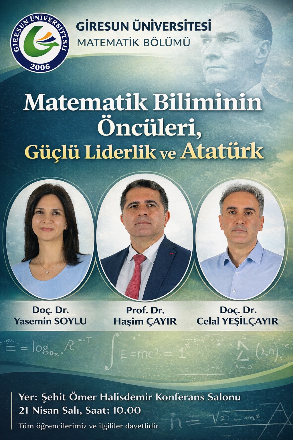 Bölümümüz tarafından düzenlenen “Matematik Biliminin Öncüleri, Güçlü Liderlik ve Atatürk” başlıklı etkinlik, akademik ve kültürel içeriğiyle dikkat çekiyor.